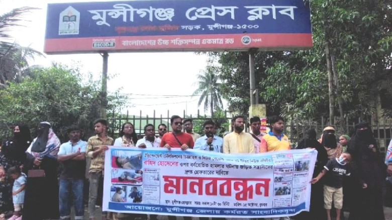 মুন্সিগঞ্জে সাংবাদিকের ওপর হামলার প্রতিবাদে মানববন্ধন...